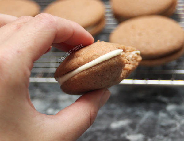 2. Once the whoopie pies are cool, pair them up and spread one half of each pair with the icing.